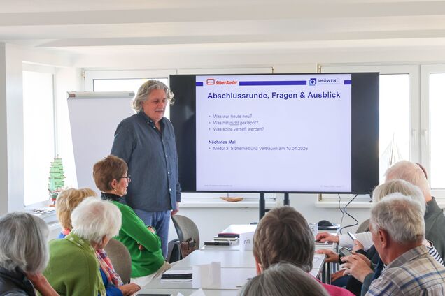 Die Kurse „Smartphone-Einstieg“ und die „Digitale Sprechstunde“ erfreuen sich großer Beliebtheit. Im Segelclub Kühlungsborn lernen Teilnehmerinnen und Teilnehmer Schritt für Schritt den Umgang mit digitalen Anwendungen – unterstützt durch ein engagiertes Team und nun auch durch einen neuen 75-Zoll-Bildschirm.