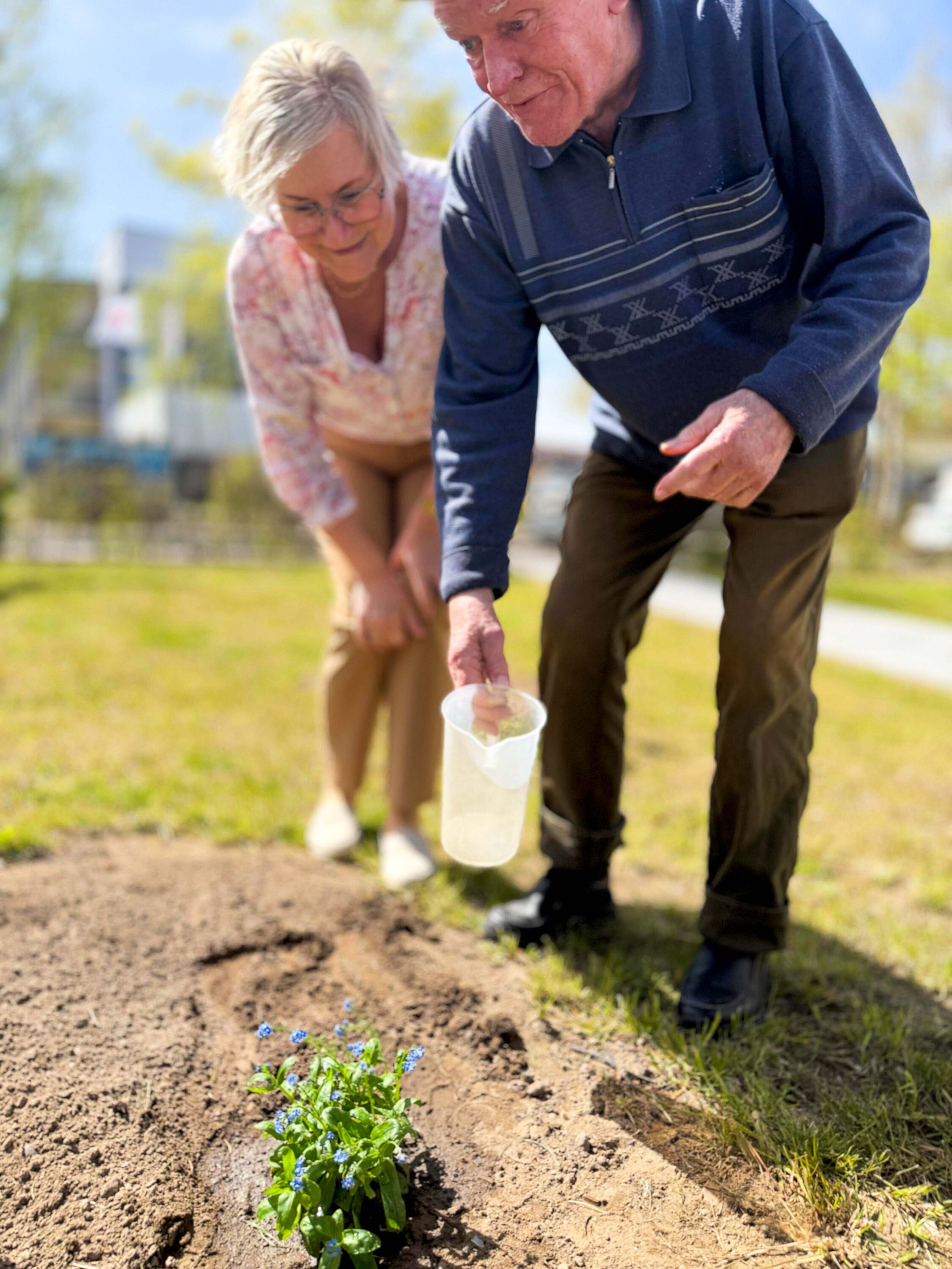 In der Tagespflege „Kiek mol rin“ fand deshalb eine kleine, aber besondere Pflanzaktion statt. Ein Ort, der wie geschaffen ist für das, wofür das Vergissmeinnicht steht: für Erinnerung, Nähe und gelebte Geschichten. Hier hat das Erinnern seinen Platz – in bekannten Volksliedern, in erzählten Märchen, in kleinen Anekdoten des Alltags. Manchmal genügt ein Lied, ein Duft oder ein Wort – und ein ganzes Leben blitzt auf.